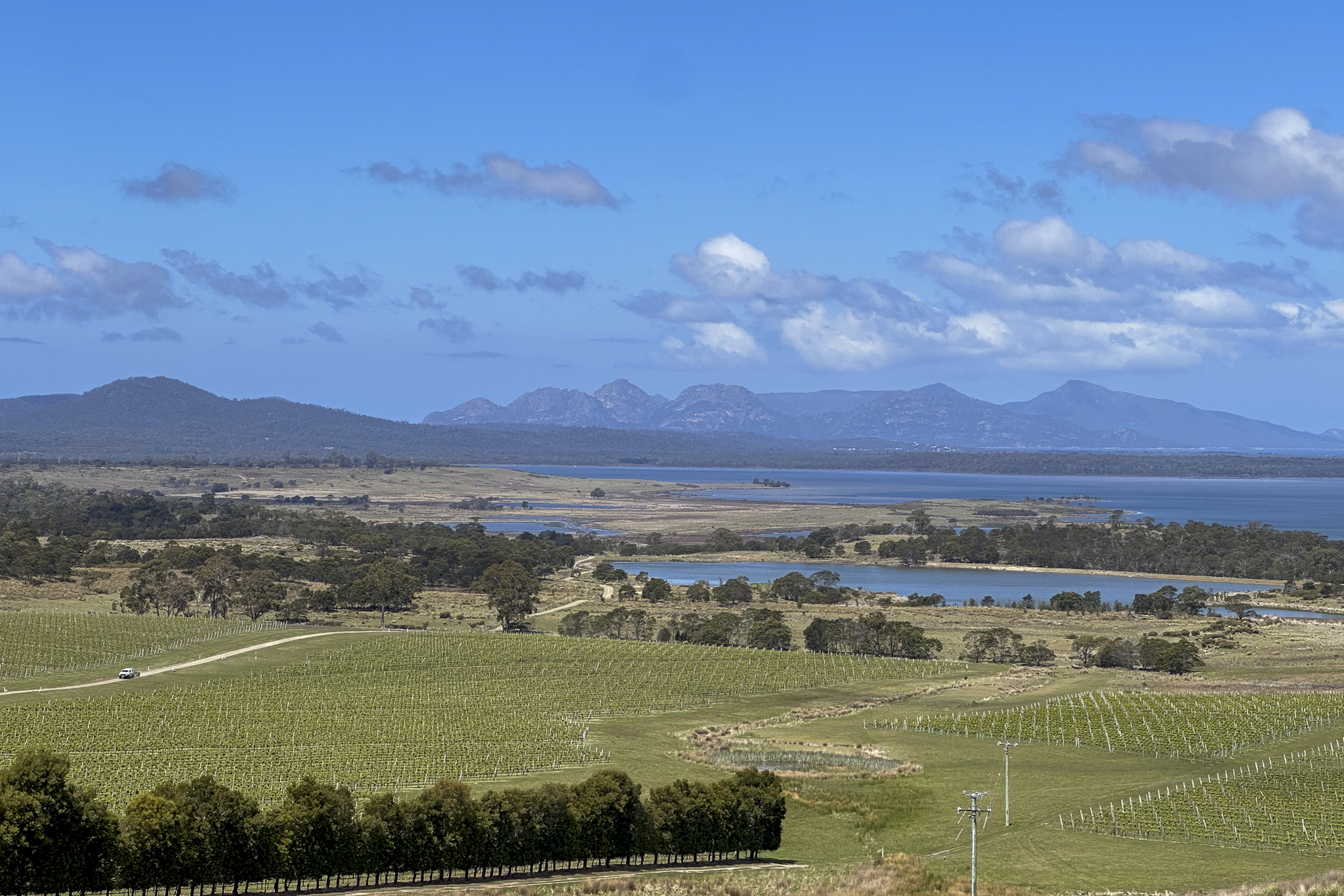 Aufgrund der schlechten Wetterprognosen für die letzten Tage entschieden wir uns schließlich, unsere Route zu ändern, und fuhren zurück in den Süden auf die kleine Insel „Bruny Island“. Zwei Nächte waren eigentlich viel zu kurz für diesen besonderen Ort. Morgens kamen „Rotbauchfilander“ bis auf die Terrasse, und eine „Tasmanian Native-hen“ zog mit ihren Küken über die Wiese davor. Es fühlte sich an, als wäre ich mitten in einem Tierpark – ein Eindruck, der mich während der gesamten Reise begleitete.